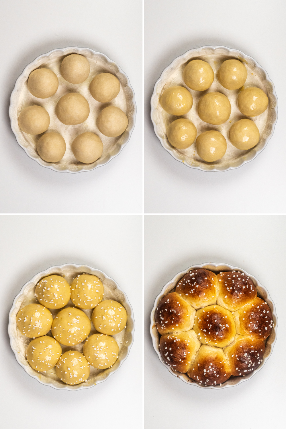 Den weizenfreien Teig, für mein Butter-Brioche Rezept, forme ich zu Kugeln wie beim Königskuchen und ist dazu noch an die französische, reichhaltige Form eines Hefeteigs mit viel Butter angelehnt. Entdecke mein Rezept mit Dinkelmehl.